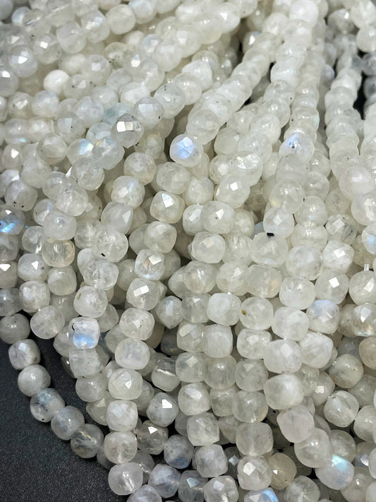 AA natural moonstone bead . Faceted 5mm cube shape bead. Beautiful natural white moonstone with blue flash on . High quality gemstone bead