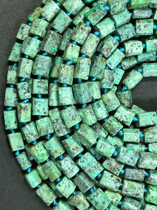 Natural African Turquoise Gemstone Faceted 8x6mm Tube Shape Bead, Beautiful Green Turquoise Color African Turquoise Beads Full Strand 15.5"