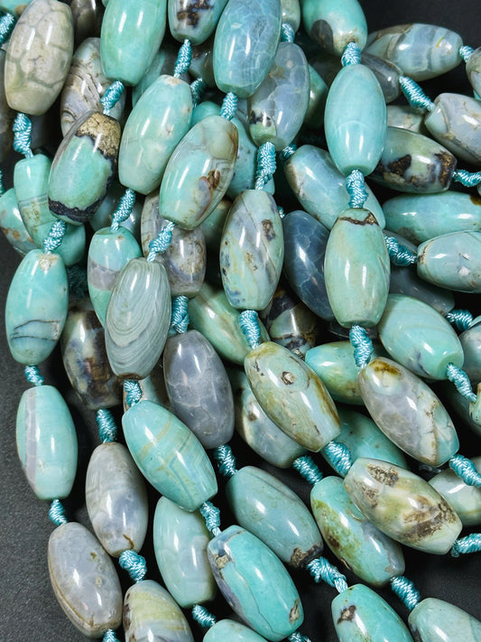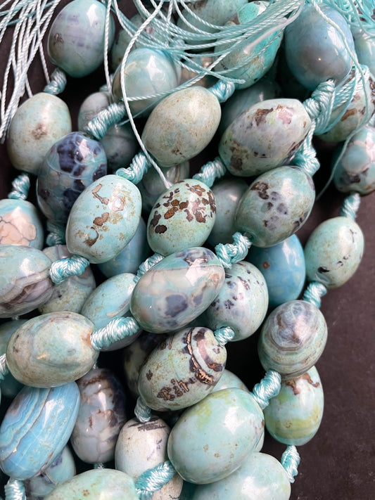 NATURAL Dragon Skin Agate Gemstone Bead 20x10mm 24x13mm Barrel Shape, Beautiful Natural Blue Brown Color Dragon Skin Agate Bead, Great Quality 15.5"