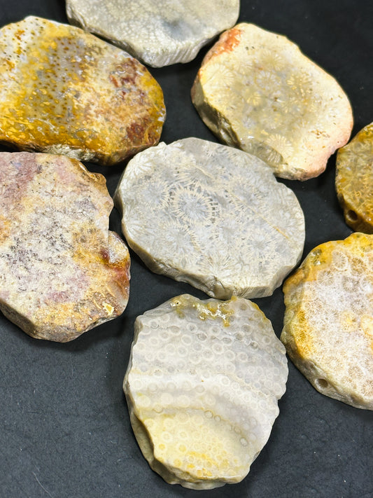 NATURAL Fossil Coral Gemstone Bead, 55x47mm Freeform Shape Bead Beautiful Natural Beige Yellow Gray Color Fossil Coral Beads, LOOSE Beads