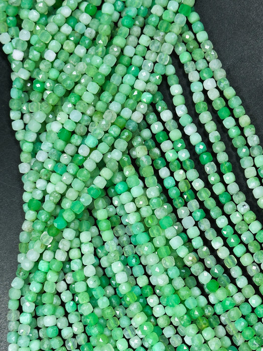 AAA NATURAL Chrysoprase Gemstone Bead Faceted 4mm Cube Shape, Gorgeous Green Color Chrysoprase Gemstone Bead Excellent Quality Beads 15.5"