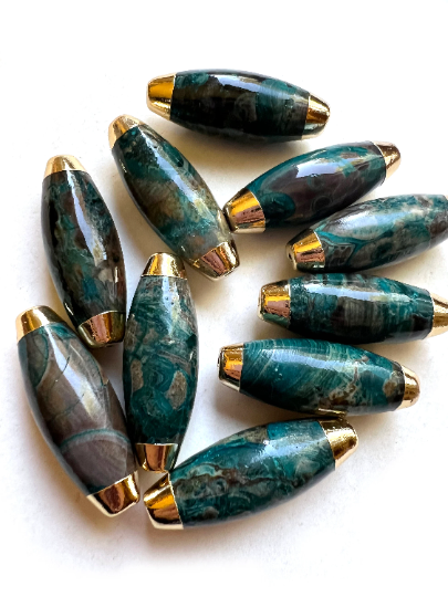 AAA Natural Blue Ocean Jasper Gemstone Bead. 15x42mm Barrel Shape Beads. Gold Fill Edge. Blue Beads. Great For Jewelry Making!