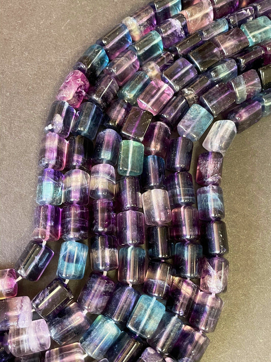 AAA Natural Fluorite Gemstone Bead 10x14mm Tube Shape, Beautiful Natural Green Purple Color Fluorite Gemstone Bead, High Quality Gemstone Beads