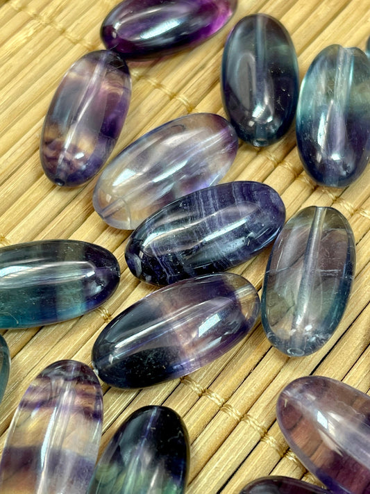 AAA Natural Fluorite Gemstone Bead 20x10mm Smooth Oval Shape, Gorgeous Natural Purple Green Color Fluorite Bead, LOOSE BEADS
