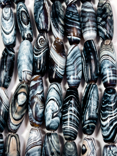 NATURAL Hand Painted Tibetan Agate Stone Bead 39x14mm Barrel Tube Shape Bead, Beautiful Brown White Color Hand Painted Tibetan Loose Beads