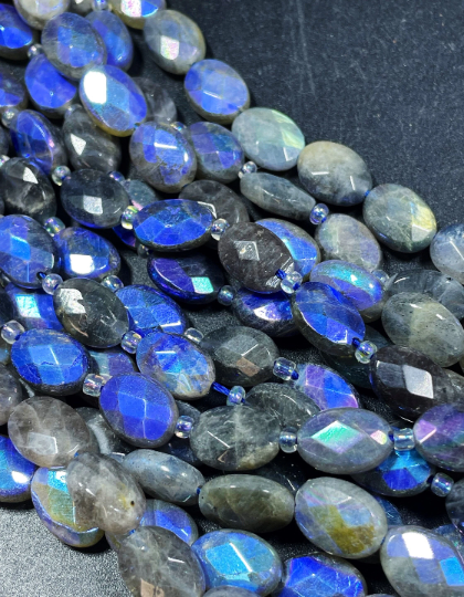 Mystic Natural Labradorite Gemstone Bead Faceted 8x10mm 9x12mm Oval Shape, Beautiful Gray Blue Color Labradorite Gemstone Bead