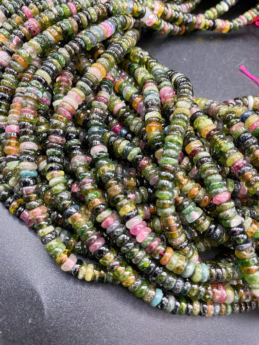 AAA Natural Tourmaline Gemstone Bead 3x6mm Rondelle Shape Bead, Gorgeous Multicolor Tourmaline Gemstone bead, Full Strand 15.5"