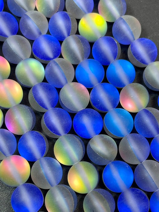 Beautiful Mermaid Glass Beads 6mm 8mm 10mm 12mm Round Beads, Gorgeous Matte Blue Rainbow Color Mermaid Glass Beads Full Strand 15.5"