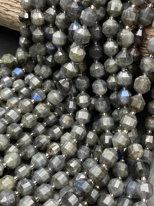 AAA Natural Blue Flash Black Labradorite Gemstone Bead 7mm Diamond Cut, Beautiful Natural Blue Flash Labradorite Gemstone Bead