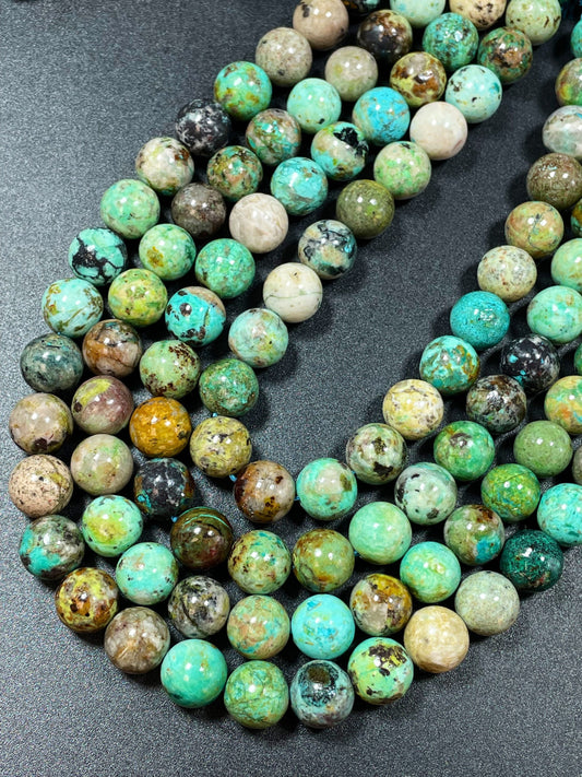 AAA Natural Peru Turquoise Gemstone Bead 8mm 10mm Round Beads, Beautiful Natural Green Blue Brown Color Turquoise Bead