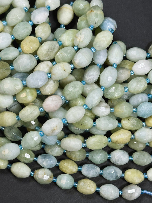Natural Aquamarine Gemstone Bead Faceted 14x10mm Barrel Shape, Beautiful Natural Blue Green Color Aquamarine Great Quality Full Strand 15.5