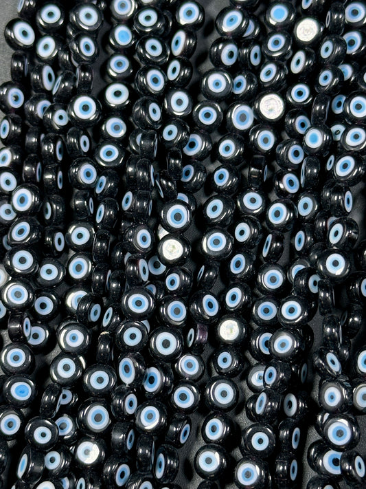 Beautiful Evil Eye Glass Bead 6mm Flat Coin Shape, Beautiful Black Color with BLUE Eyes Evil Eye Glass Beads, Religious Amulet Prayer Beads
