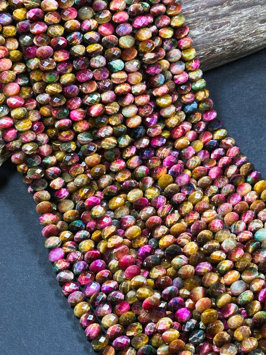 Natural Galaxy Tiger Eye Gemstone Bead Faceted 8x5mm Rondelle Shape, Gorgeous Multicolor Pink Golden Brown Color Tiger Eye Full Strand 15.5"