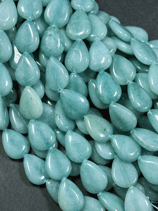 Natural Green Jade Gemstone Bead 20x15mm Teardrop Shape, Beautiful Burma Color Green Jade Gemstone Bead, Excellent Quality Full Strand 15.5"