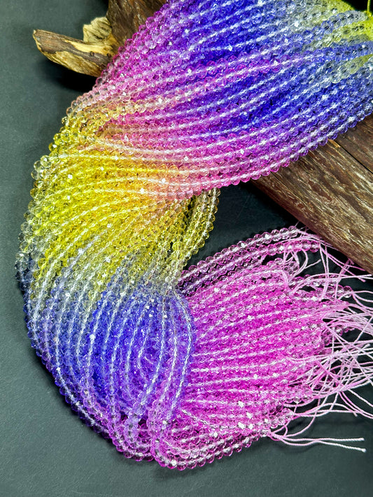 Gorgeous Multicolor Crystal Beads, Faceted 4mm 6mm 8mm Rondelle Shape, Beautiful Yellow Purple Pink Color Crystal Beads Full Strand 14.4"