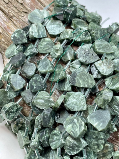 Natural Seraphinite Gemstone Bead Raw 10x14mm Teardrop Shape, Gorgeous Natural Green Color Seraphinite Gemstone Beads