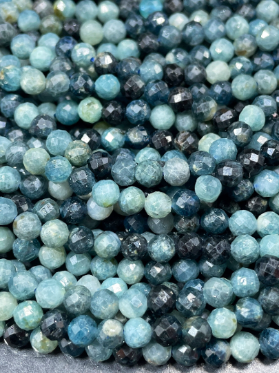 NATURAL Blue Tourmaline Gemstone Bead Faceted 4mm Round Shape Beads. Beautiful Blue Multicolor Tourmaline Gemstone Beads Full Strand 15.5"