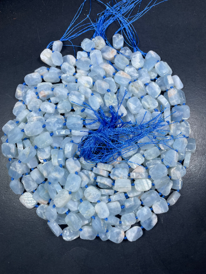 Natural Aquamarine Gemstone Bead 10x15mm Rectangle Tablet Shape, Beautiful Natural Aqua Blue Color Aquamarine, Full Strand 15.5"