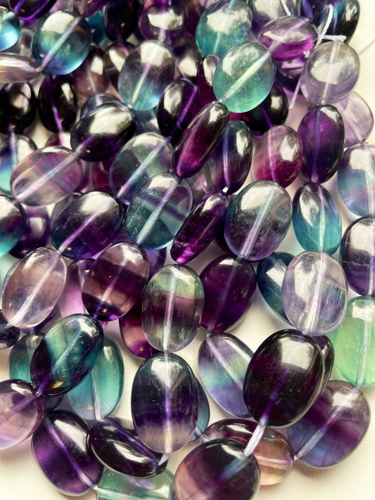 AAA Natural Fluorite Gemstone Bead 13x18mm Oval Shape, Beautiful Natural Purple Green Color Fluorite Gemstone Bead, Great Quality 15.5"