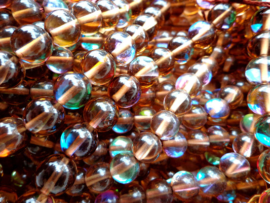 Mermaid Glass Beads, 6mm 8mm 10mm 12mm Round Beads, Beautiful Rainbow Glossy Brown Beads, Great Quality Beads, Full Strand 15.5 inch