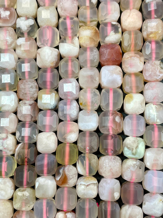 AAA Natural Cherry Blossom Flower Agate Gemstone Bead Faceted 8mm Cube Shape, Gorgeous Natural Beige Light Pink Clear Color Beads