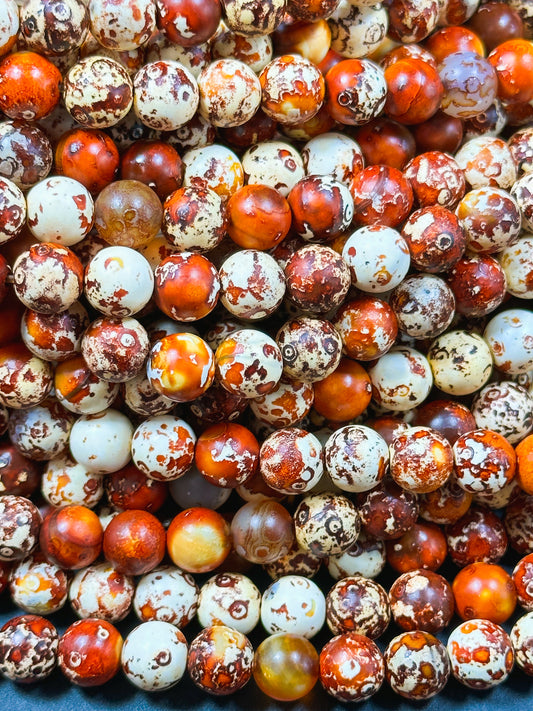 NATURAL Tibetan Gemstone Bead 8mm 10mm Round Bead, Beautiful Orange Brown Color Tibetan Gemstone Bead, Excellent Quality Tibetan Beads 15.5"
