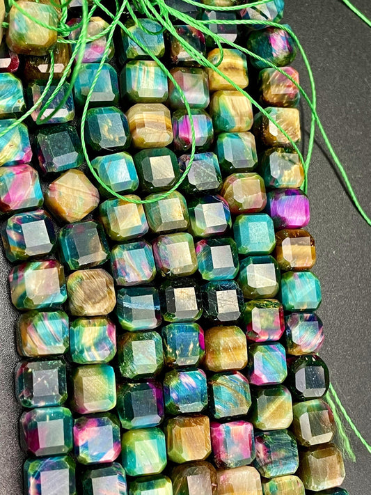 AAA Galaxy Tiger Eye Gemstone Bead Faceted 9mm Cube Shape, Gorgeous Multicolor Tiger Eye Gemstone Beads