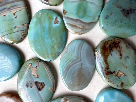 Natural Dragon Skin Agate Gemstone Bead 30x40mm Oval Shape, Beautiful Sky Blue Brown Color LOOSE Dragon Skin Agate Bead