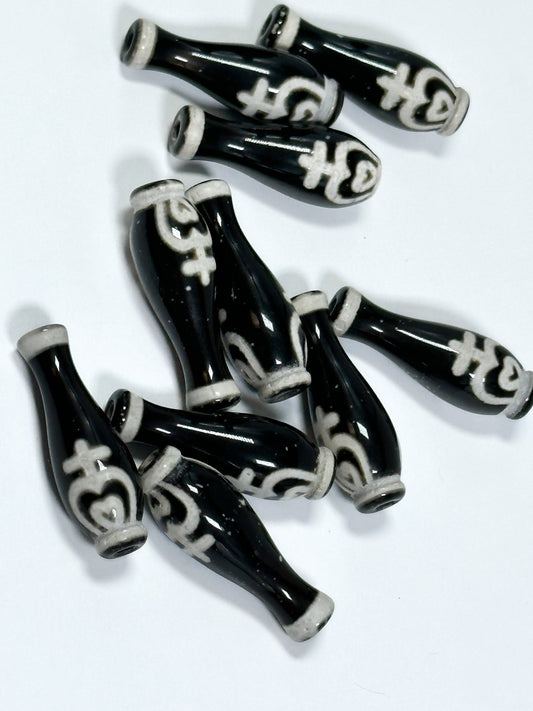 NATURAL Hand Painted Tibetan Agate Stone Bead 30x10mm Vase/Bottle Shape Bead, Hand Painted Black and White Color Loose Tibetan Agate Bead