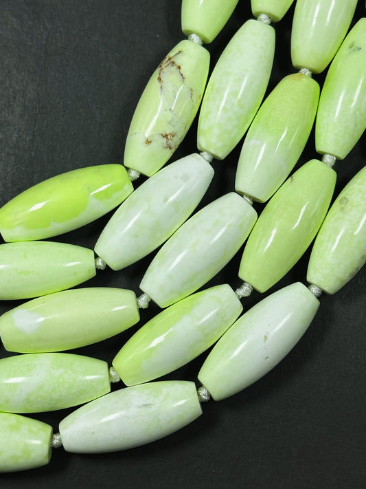 Natural Gaspeite Turquoise Gemstone Bead 39x16mm Barrel Shape Bead, Beautiful Lemon Green Color Gaspeite Turquoise Stone Bead 15.5" Strand