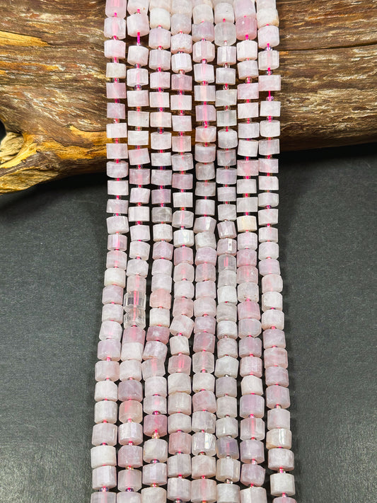 Natural Rose Quartz Gemstone Bead Faceted 8x6mm Pinwheel Cylinder Shape Bead, Beautiful Natural Pink Color Rose Quartz Gemstone Beads 15.5"