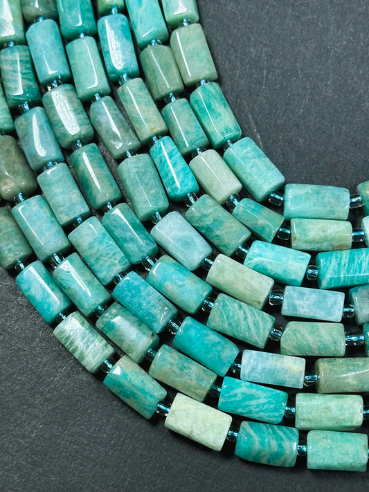 Natural Amazonite Gemstone Bead Faceted 12x8mm Tube Shape Bead, Beautiful Natural Green Blue Color Amazonite Stone Beads, Full Strand 15.5"