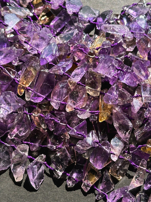 Natural Ametrine Gemstone Bead Freeform Teardrop Shape Bead, Gorgeous Natural Purple Amethyst Yellow Citrine Clear Color Ametrine Bead 15.5"