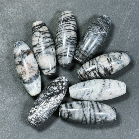 AAA Natural Spider Web Jasper Gemstone Bead 40x15mm Barrel Shape, Beautiful Black Gray White Color Web Jasper Gemstone Beads, LOOSE BEADS