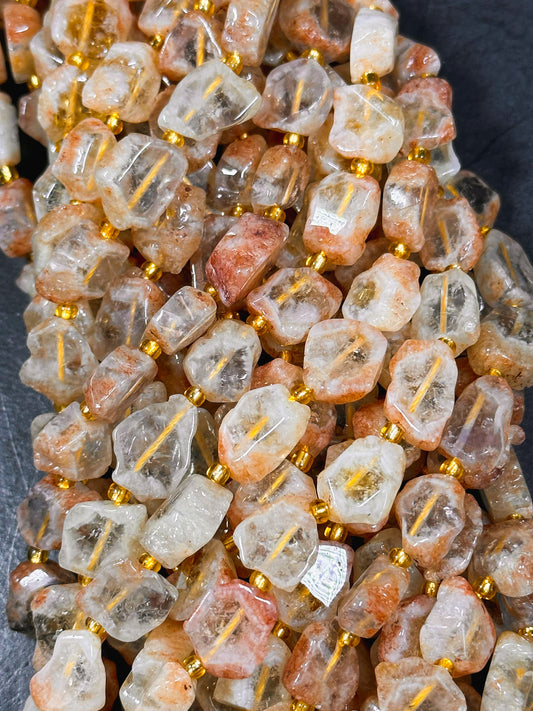 Natural Citrine Gemstone Bead 13mm Flat Freeform Shape Bead, Gorgeous Natural Orange Golden Yellow Clear Color Citrine Gemstone Beads 15.5"