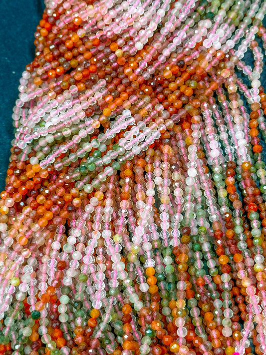 AAA NATURAL Multicolor Rutilated Quartz Gemstone Bead Faceted 3mm Round Beads Beautiful Red Orange Green Color Rutilated Quartz 15.5" Strand