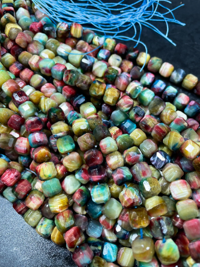 Beautiful Rainbow Galaxy Tiger Eye Gemstone Bead Faceted 8mm Cube Shape, Beautiful Rainbow Galaxy Color Tiger Eye Gemstone Beads