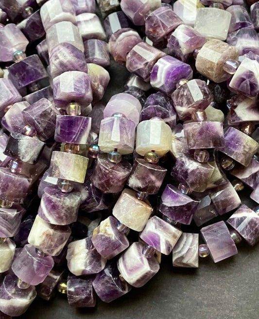 Natural Flower Amethyst Gemstone Bead Faceted 8x10mm Rondelle Wheel Shape, Beautiful Natural Purple White Amethyst Gemstone Bead