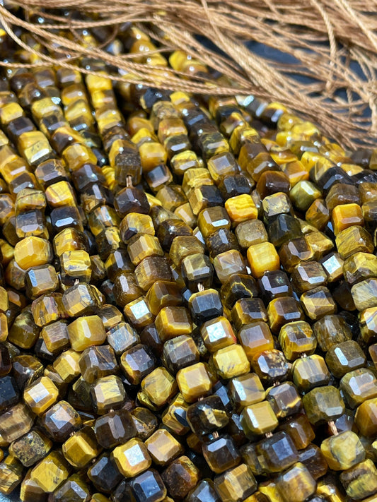 AAA Natural Tiger Eye Gemstone Bead Faceted 5mm 7mm Cube Shape, Gorgeous Brown Yellow Color Tiger Eye Gemstone Beads