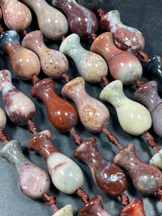 AAA Natural Polychrome Jasper Gemstone Bead 28x13mm Vase Shape, Gorgeous Brown Gray White Jasper Gemstone Beads