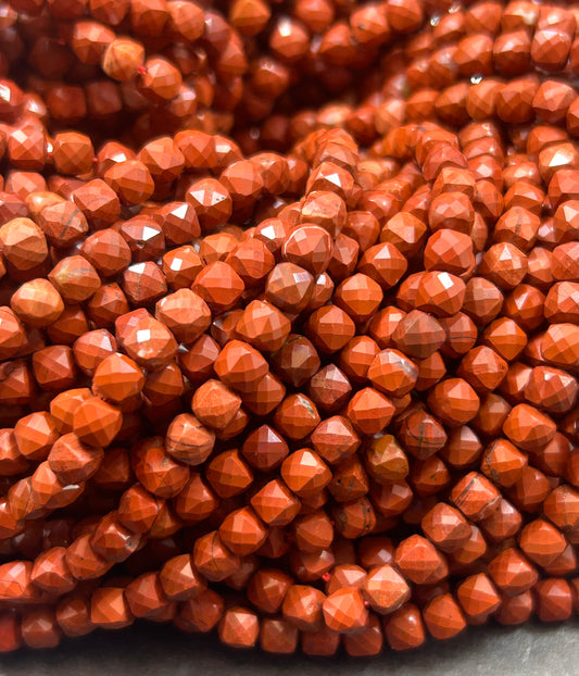 AAA natural red stone jasper gemstone bead. Faceted 4mm cube shape bead. Beautiful natural red brown color gemstone bead. Loose bead