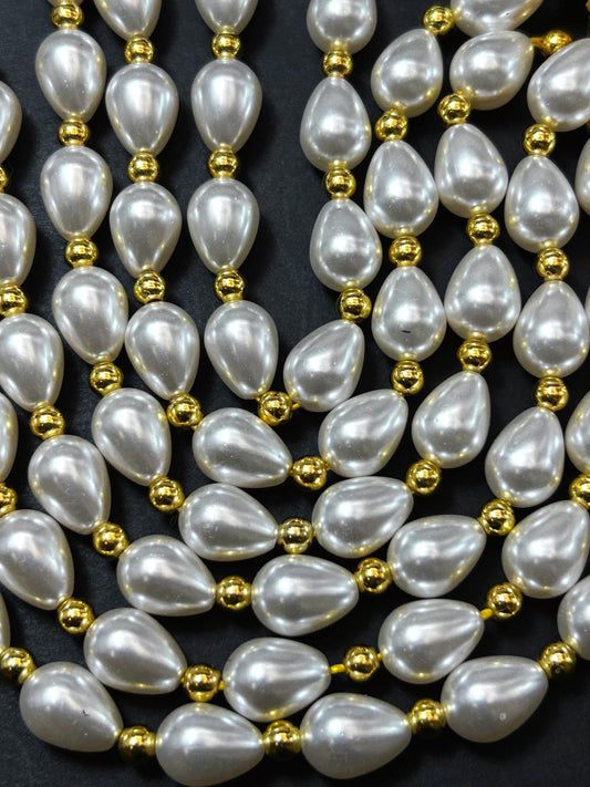 Chinese Swarovski Pearl Crystal Beads 13.5x9.5mm teardrop Bead, Beautiful White Swarovski Crystal Pearl 7.5"