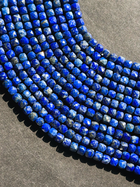 AAA Natural Lapis Lazuli Gemstone Bead Faceted 4mm Cube Shape Bead, Beautiful Natural Royal Blue Color Lapis Lazuli, Excellent Quality 15.5"