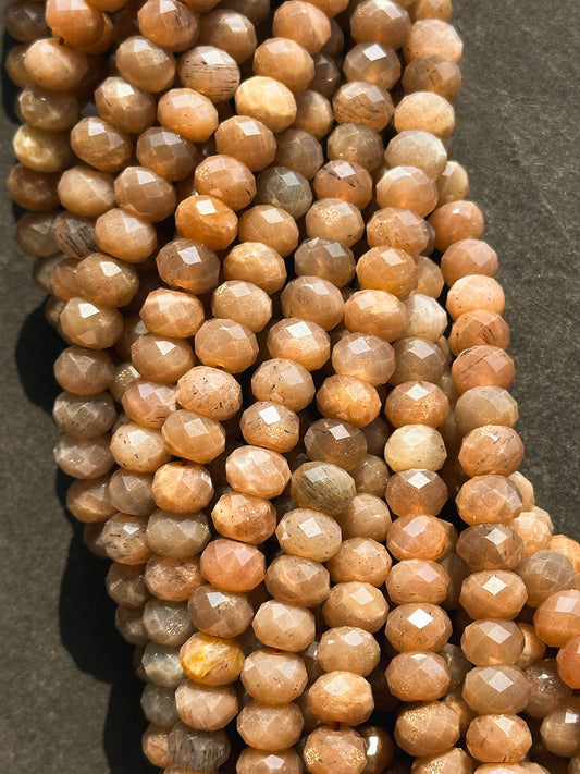 AAA Natural Brown Moonstone Gemstone Bead, Faceted 8x5mm Rondelle Shape, Gorgeous Natural Brown Color w/ Flash Moonstone Beads 15.5" Strand