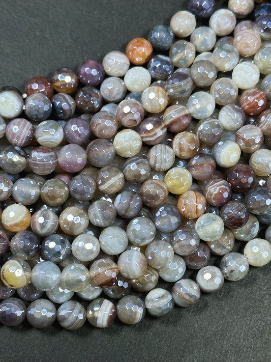 Mystic Natural Botswana Agate Gemstone Bead Faceted 8mm Round Beads, Beautiful Natural Multicolor Gray Brown Botswana Agate Stone Bead 15.5"
