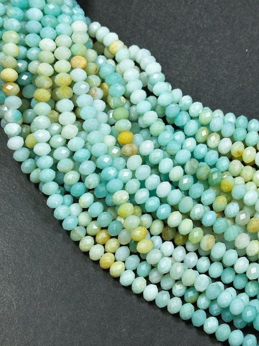 Natural Flower Amazonite Gemstone Bead Faceted 6x4mm Rondelle Shape, Beautiful Natural Green Blue Color Flower Amazonite Bead 15.5" Strand