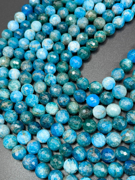 AAA Natural Blue Apatite Gemstone Bead Faceted 6mm 8mm 12mm Round Beads, Beautiful Blue Color Apatite Gemstone Beads
