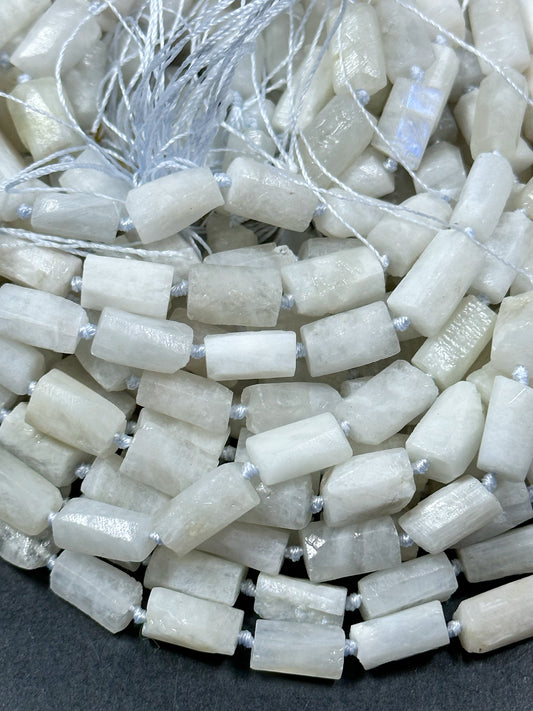 NATURAL Matte Moonstone Gemstone Bead 12x8mm Tube Shape Bead, Beautiful Natural White Color Moonstone Gemstone Bead Full Strand 15.5"