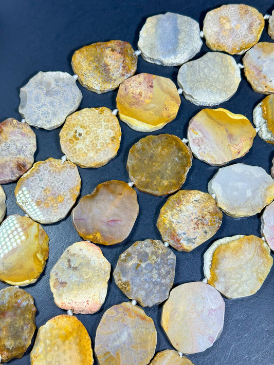 NATURAL Fossil Coral Gemstone Bead, 55x47mm Freeform Shape Bead Beautiful Natural Beige Yellow Gray Color Loose Beads Full Strand 15.5"
