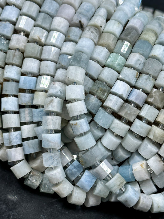 NATURAL Aquamarine Gemstone Bead 8x5mm Rondelle Shape Bead, Beautiful Blue White Color Aquamarine Gemstone Bead, Full Strand 15.5"